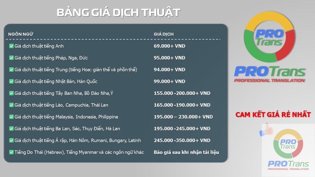 Báo giá dịch thuật năm 2024 đang áp dụng tại PROTRANS