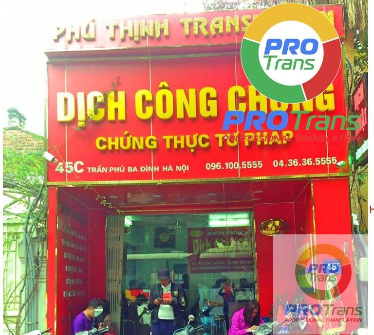 Phú thịnh có hơn 10 năm kinh nghiệm trong lĩnh vực dịch thuật và là đối tác dịch thuật của các tổ chức, cá nhân có uy tín hàng đầu tại Việt Nam. Quý khách hàng có thể liên hệ với đơn vị theo các thông tin sau: